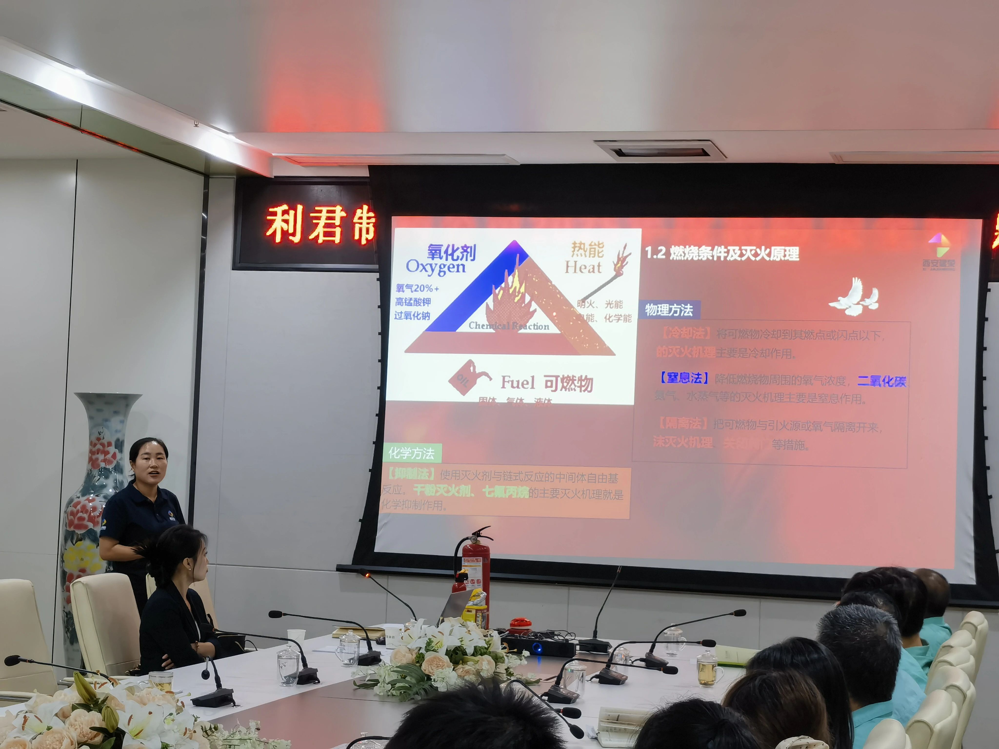 在灭火原理与方法的讲解中,宋老师分别从物理方法和化学方法展开阐述。她指出,物理灭火是通过隔离、