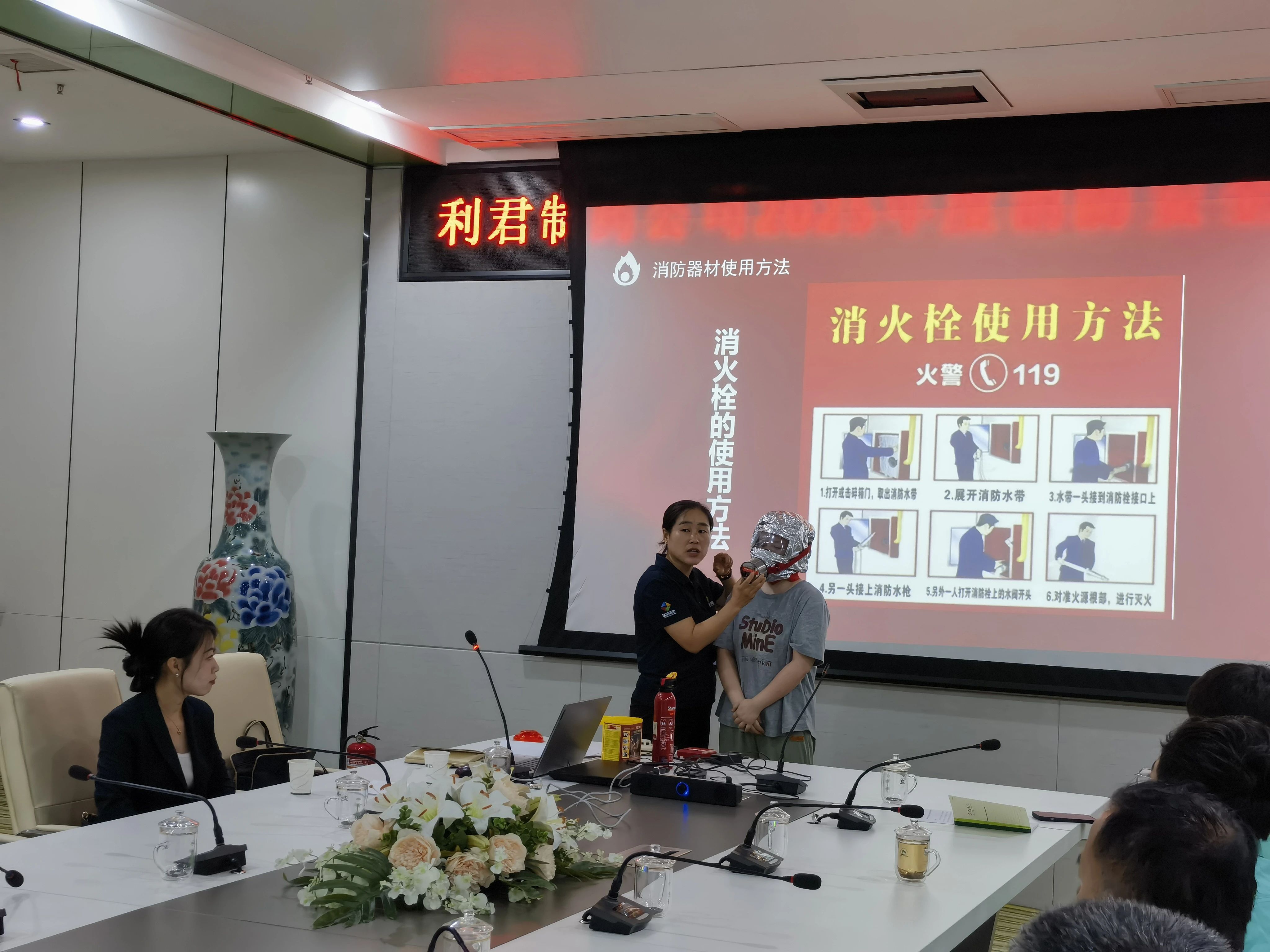 随后,宋老师生动演示了如何正确使用灭火器、消火栓等消防器材,并邀请员工上台进行实操演练,手把手纠正操作误区。
