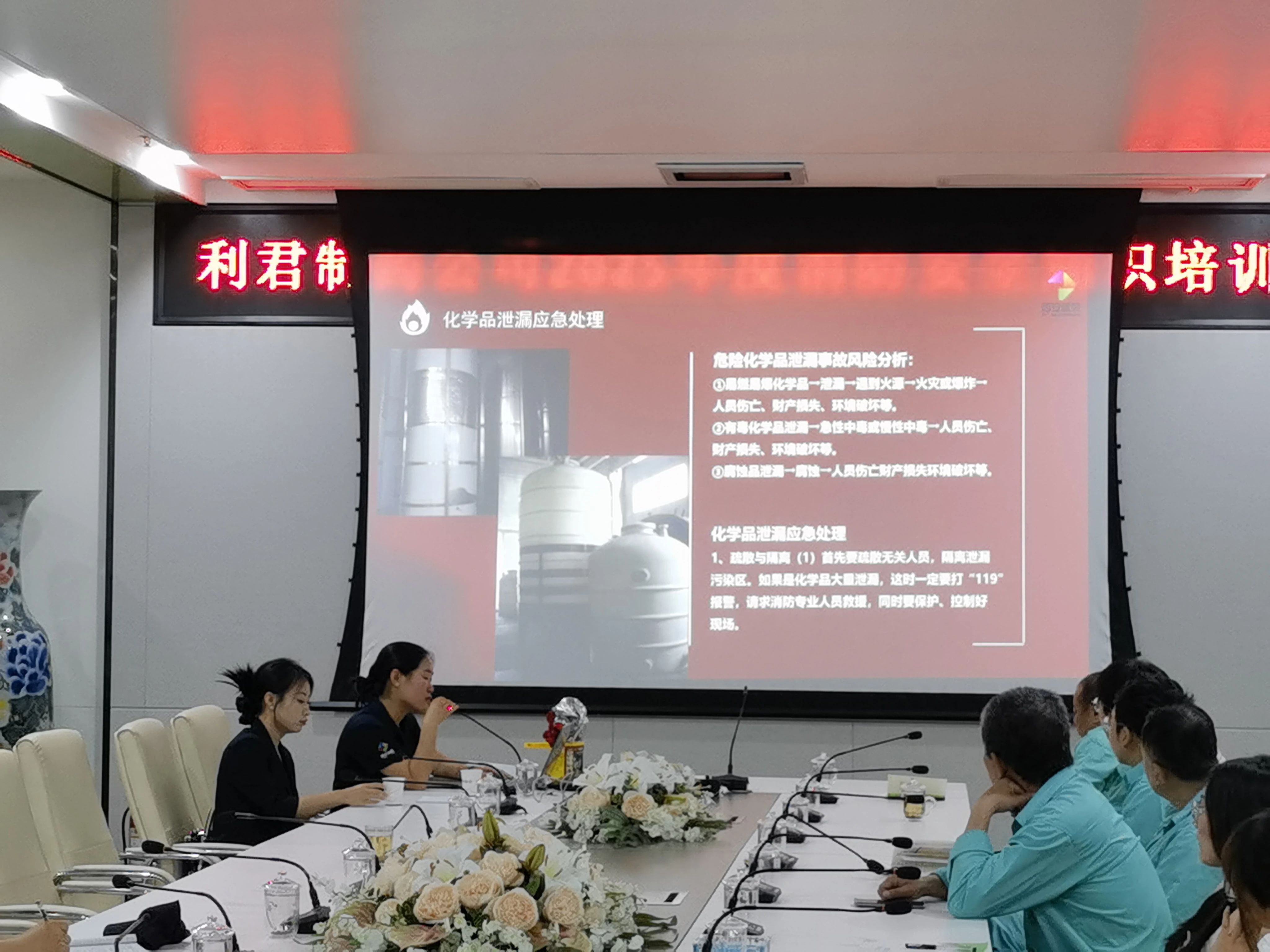 通过一系列触目惊心的真实案例视频引起大家的重视。针对化学品泄露,她强调需第一时间佩戴防护装备,利用吸附材料围堵并及时上报;
