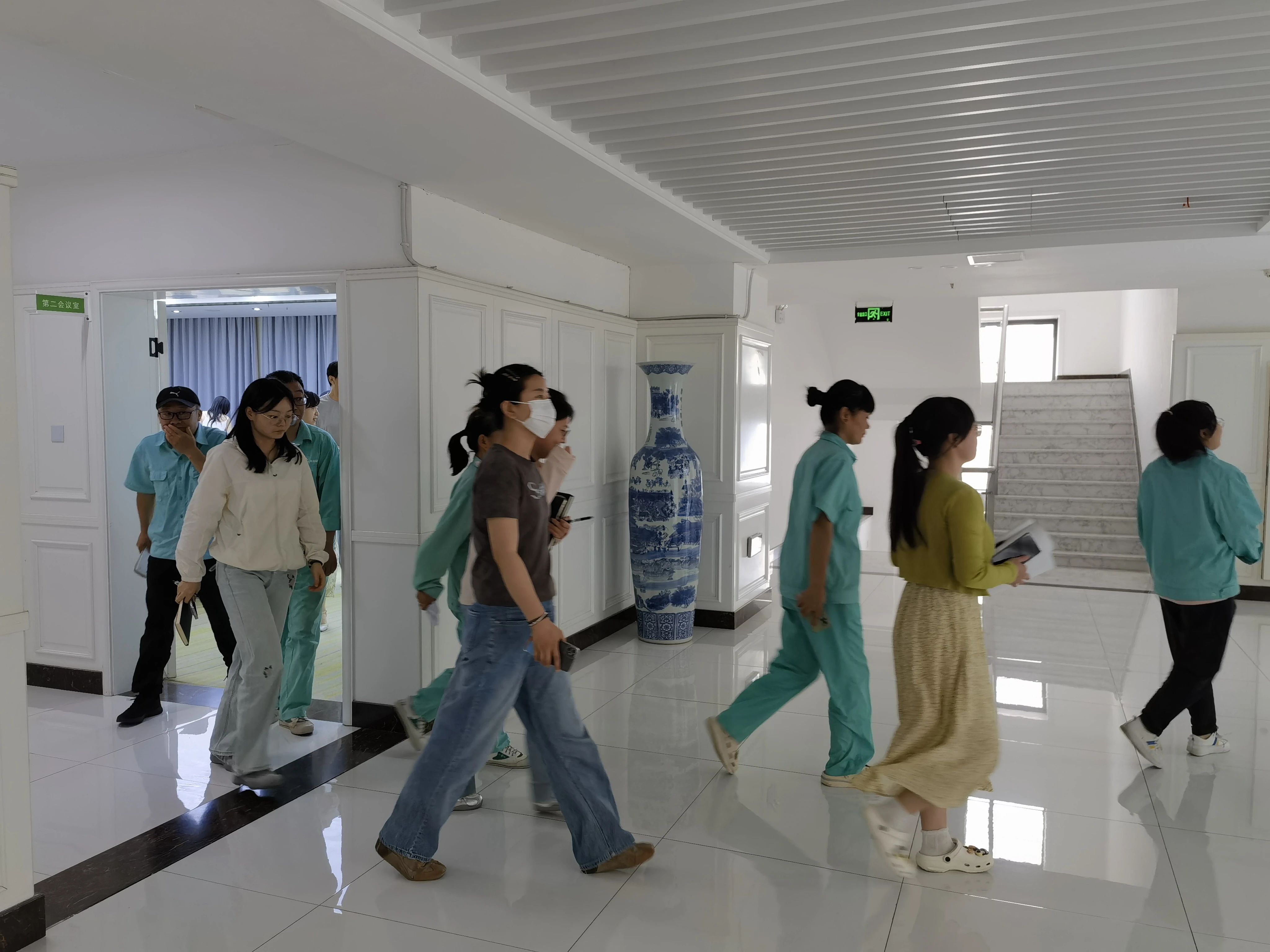 在疏散标识讲解中,她结合大厅布局,指导员工识别安全出口、疏散指示箭头及应急照明设备的使用方法。最后,宋老师总结火灾疏散小窍门:保